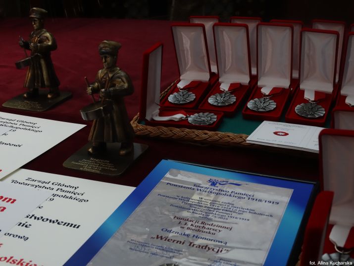 Aktu wręczenia statuetek dokonali: Wicemarszałek Województwa Wielkopolskiego Wojciech Jankowiak oraz Prezes Zarządu Głównego TPPW Tadeusz Musiał. Tradycyjnie podczas uroczystości wręczono odznaczenia i medale osobom szczególnie zasłużonym dla utrwalania wiedzy oraz pamięci o Powstaniu Wielkopolskim i jego bohaterach: Medale Komisji Edukacji Narodowej, odznaki honorowe „Za zasługi dla województwa wielkopolskiego”oraz odznaki honorowe TPPW „Wierni Tradycji”. W czasie uroczystości głos zabrał Wicemarszałek Wojciech Jankowiak. W swoim wystąpieniu złożył wyrazy uznania dla osób i instytucji wyróżnionych za podejmowane działania w zakresie krzewienia wiedzy o Powstaniu Wielkopolskim 1918-1919 oraz podziękowania dla członków Towarzystwa. Głos zabrali również : w imieniu odznaczonych – Arkadiusz Słabig, Przemysław Terlecki – dyrektor Wielkopolskiego Muzeum Niepodległości, który mówił o stanie prac nad budową nowego Muzeum Powstania Wielkopolskiego, dr Marek Rezler nt. nowych kierunków badań nad Powstaniem Wielkopolskim, a także Zofia Smolarz – prezes Towarzystwa Pamięci Gen. Józefa Dowbora Muśnickiego i Dorota Ciołka-Wiśniewska z Koła TPPW w Gorzowie Wielkopolskim. Przedstawiciele Oddziału PTTK przekazali na ręce prezesa ZG TPPW Tadeusza Musiała ogromną rozetę utkaną dla upamiętnienia 107. rocznicy Powstania Wielkopolskiego. Następnie wystąpiła Agnieszka Szymańska, która zaśpiewała dwie pieśni z akompaniamentem Joanny Majewskiej. Uroczystość zakończyło odśpiewanie Roty. Po części oficjalnej w Sali Złotej odbyło się tradycyjne spotkanie przy kawie.