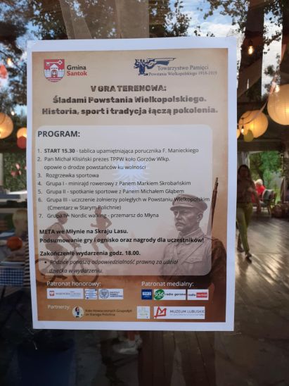21 września 2025 r. – miała miejsce piąta edycja wydarzenia łączącego pamięć historyczną i integrację lokalnej społeczności Gminy Santok z rekreacją i promocją zdrowego stylu życia. W niedzielne ciepłe popołudnie przed udekorowaną flagami Tablicą upamiętniającą Powstańca Wielkopolskiego i uczestnika wojny polsko-bolszewickiej, ale także pioniera Starego Polichna porucznika Franciszka Manieckiego zebrało się ponad 50 pasjonatów historii, od młodzieży szkolnej po seniorów. Po powitaniu i wyjaśnieniu zasad gry uroczyście zapalony został pamiątkowy znicz. Po rozgrzewce uczestnicy gry podzieleni na grupy wyruszyli na zaplanowane trasy. W konkursach i zadaniach bardzo licznie wzięła udział młodzież szkolna. Spacer historyczny przez Stare Polichno z symbolicznym zapaleniem zniczy na grobie porucznika Franciszka Manieckiego poprowadził Prezes Gorzowskiego Koła TPPW Michał Klisiński, który opowiedział o Powstaniu Wielkopolskim i Powstańcach – Pionierach. Z kolei cykliści wyruszyli na krótki rajd rowerowy. Odbył się również spacer nordic walking poprowadzony przez grupę „Seniority” ze Starego Polichna. Nad bezpieczeństwem uczestników czuwali druhowie z OSP Stare Polichno. Wszystkie grupy po pokonaniu zaplanowanych tras spotkały się w Młynie Na Skraju Lasu, gdzie uczestnicy rozwiązywali tematyczne krzyżówki. Uczestnikom przekazano nagrody ufundowane przez Instytut Pamięci Narodowej oraz upominki od Gminy Santok i Urzędu Marszałkowskiego Województwa Lubuskiego. Na zakończenie gry przygotowano poczęstunek oraz ognisko z pieczeniem kiełbasek.