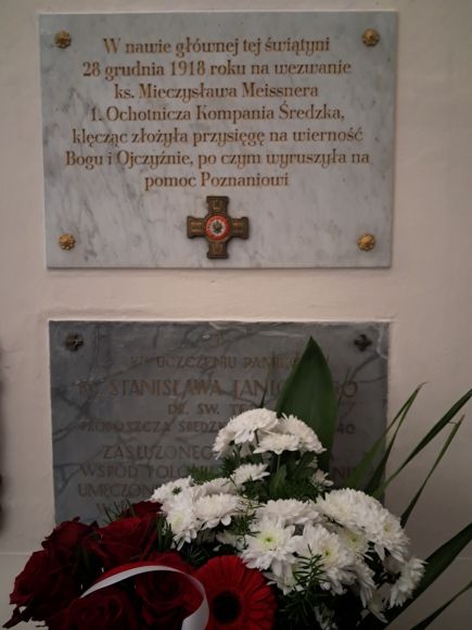 - w Środzie Wielkopolskiej tradycyjnie uroczystości rozpoczęły się w Bazylice, gdzie ks. kanonik Janusz Śmigiel odprawił mszę świętą. Następnie uczniowie Liceum Ogólnokształcącego w Środzie Wlkp. przedstawili inscenizację przysięgi 1. Ochotniczej Kompani Średzkiej złożonej w tej świątyni na ręce ks. Mieczysława Meissnera. W kruchcie Bazyliki nastąpiło odsłonięcie pamiątkowej tablicy upamiętniającej to wydarzenie. Po zakończeniu uroczystości w Bazylice uczestnicy spotkali się na Kwaterze Powstańców, gdzie po odśpiewaniu hymnu państwowego głos zabrali: poseł Tadeusz Tomaszewski, Burmistrz Środy Wielkopolskiej Piotr Mieloch i w imieniu Zarządu Stowarzyszenia Rodzin Powstańców Wielkopolskich Tomasz Pawlicki. Na zakończenie uroczystości uczestnicy złożyli wiązanki kwiatów. W uroczystości uczestniczyły liczne poczty sztandarowe, mieszkańcy Powiatu Średzkiego, przedstawiciele zakładów pracy, organizacji pozarządowych, uczniowie średzkich szkół i harcerze. Oprawę uroczystości zapewnili uczniowie klas wojskowych Zespołu Szkół Rolniczych. Fot. Jerzy Szymański, Krzysztof Kubiak.